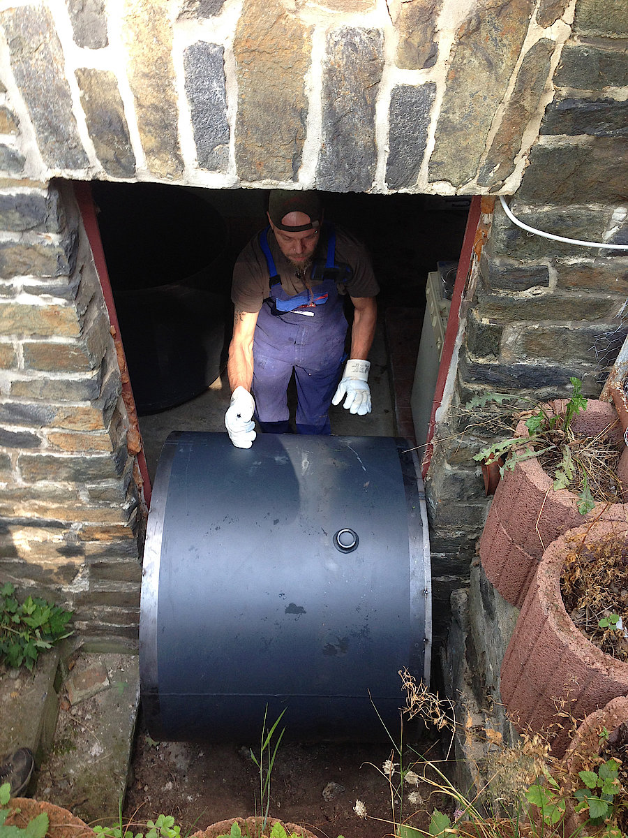 Damit diese Segmente perfekt passen, werden die varmeco-Speicher im Werk komplett aufgebaut und am Stück zur Baustelle geliefert. Das Zerlegen geschieht vor Ort – passend zur lichten Weite der Einbringöffnungen und unter Berücksichtigung eines maximalen Segmentgewichts von 100 kg. So können zwei Mitarbeiter die Einzelteile in das Objekt tragen. Die Montage am Installationsort geschieht mittels Elektrodenschweißen. Dies geht dank eines Innenrings, der an den werkseitig vorgesehenen Trennstellen angebracht wurde, leicht und sicher von der Hand. Der Innenring dient als Gegenlage und verhindert, dass die Segmente beim Zusammenfügen verrutschen. Lieferbar sind solche Speicher für Durchmesser bis 1.500 mm bei ebenerdiger Einbringung; wo Treppen zu überwinden sind, wird ein maximaler Durchmesser von 1.200 mm empfohlen.