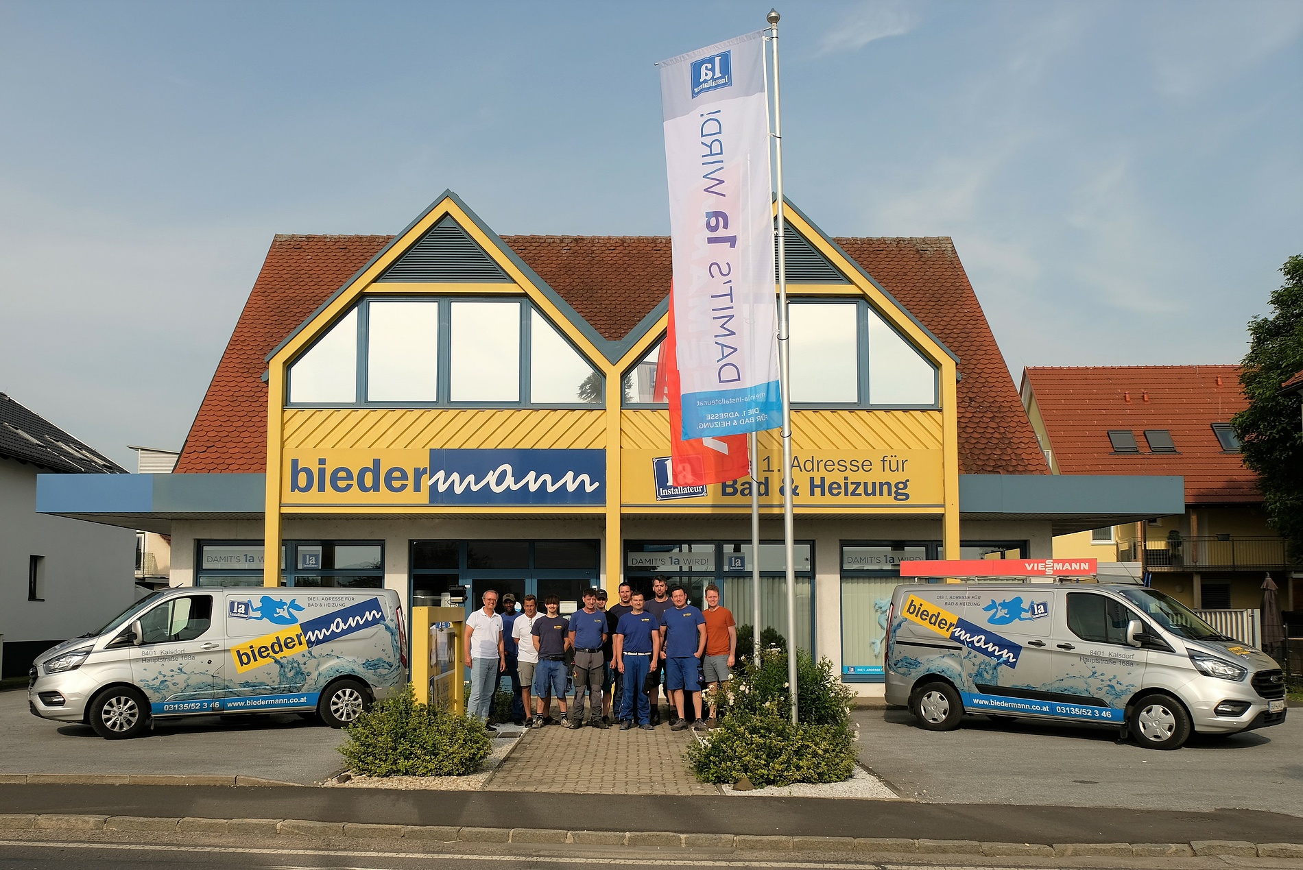 Als Wilhelm Biedermann im Jahr 1960 sein Unternehmen in Kalsdorf bei Graz gründete, waren Wohnhaus und Betrieb noch am selben Standort. Im Laufe der Monate stiegen die Aufträge und bereits 1961 wurde mit Karl Maier der erste Lehrling aufgenommen. Er blieb – bis zu seiner Pensionierung – 47 Jahre und wurde zu einer wertvollen Stütze des Unternehmens. Im Jahr 1982 wurde das Unternehmen Mitglied bei den 1a-Installateuren und 1989 übergab Wilhelm Biedermann den Familienbetrieb an seinen Sohn Ing. Armin Biedermann.