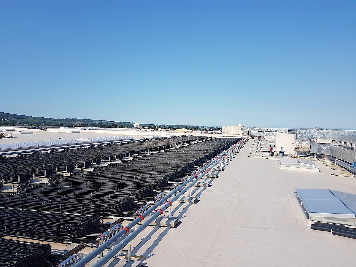 Eine entscheidende Rolle bei diesem Projekt spielt der Einsatz des bisher größten Eisspeichersystems in ganz Europa – patentiert von der Firma Viessmann. Dieser Eisspeicher versorgt als energieeffiziente Wärmequelle eine Wärmepumpenanlage, welche sowohl zur Beheizung als auch zur Kühlung des Logistikzentrums dient. Mithilfe dessen werden die CO2-Emissionen sowie die Betriebskosten auf ein Minimum reduziert. Ein gleichmäßiges Temperaturprofil, geringe Luftbewegung und somit keine Staubaufwirbelung sowie ein arbeitsförderndes Umfeld aufgrund der hohen thermischen Behaglichkeit sind weitere Vorteile des Systems. Das neue, zweigeschossige IKEA-Lager im 21. Wiener Bezirk wird mit einer Nutzfläche von knapp 50.000 m2 der neue Knotenpunkt, über den der Wiener Bereich auslieferungsmäßig abgewickelt wird. In weiterer Folge soll auch der Versand der Online- Bestellungen von diesem Zentrum aus durchgeführt werden. Für IKEA war es enorm wichtig, beim neuen Logistikzentrum den Schwerpunkt auf Nachhaltigkeit und Ressourcenschonung zu legen. Daher hat IKEA bei seiner Ausschreibung für den Neubau das Thema Erneuerbarer Energien in den Mittelpunkt des nachhaltigen Projekts gestellt. Innerhalb des durch die TBH Ingenieur GmbH (Geschäftsfeld E4) erarbeiteten Energiekonzeptes wurde auf eine maximierte Reduktion von CO2-Emissionen und Betriebskosten geachtet, wozu unterschiedliche Erneuerbare Energiequellen zusammengeführt wurden.